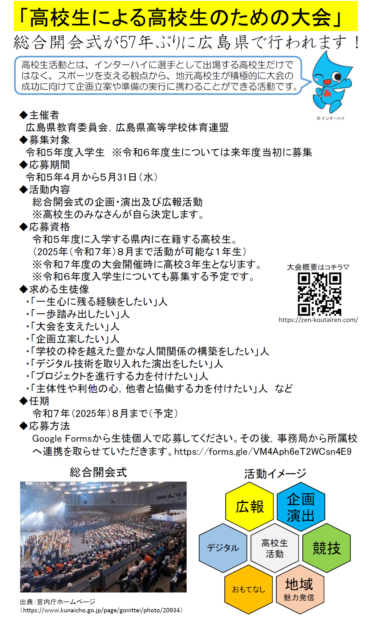 広島県高校生活動推進委員を募集